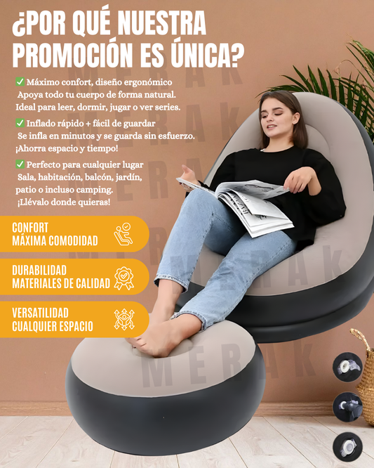 COMBO 3 EN 1 SOFA INFLABLE PREMIUM+ SILLON INFLABLE + INFLADOR MANUAL
